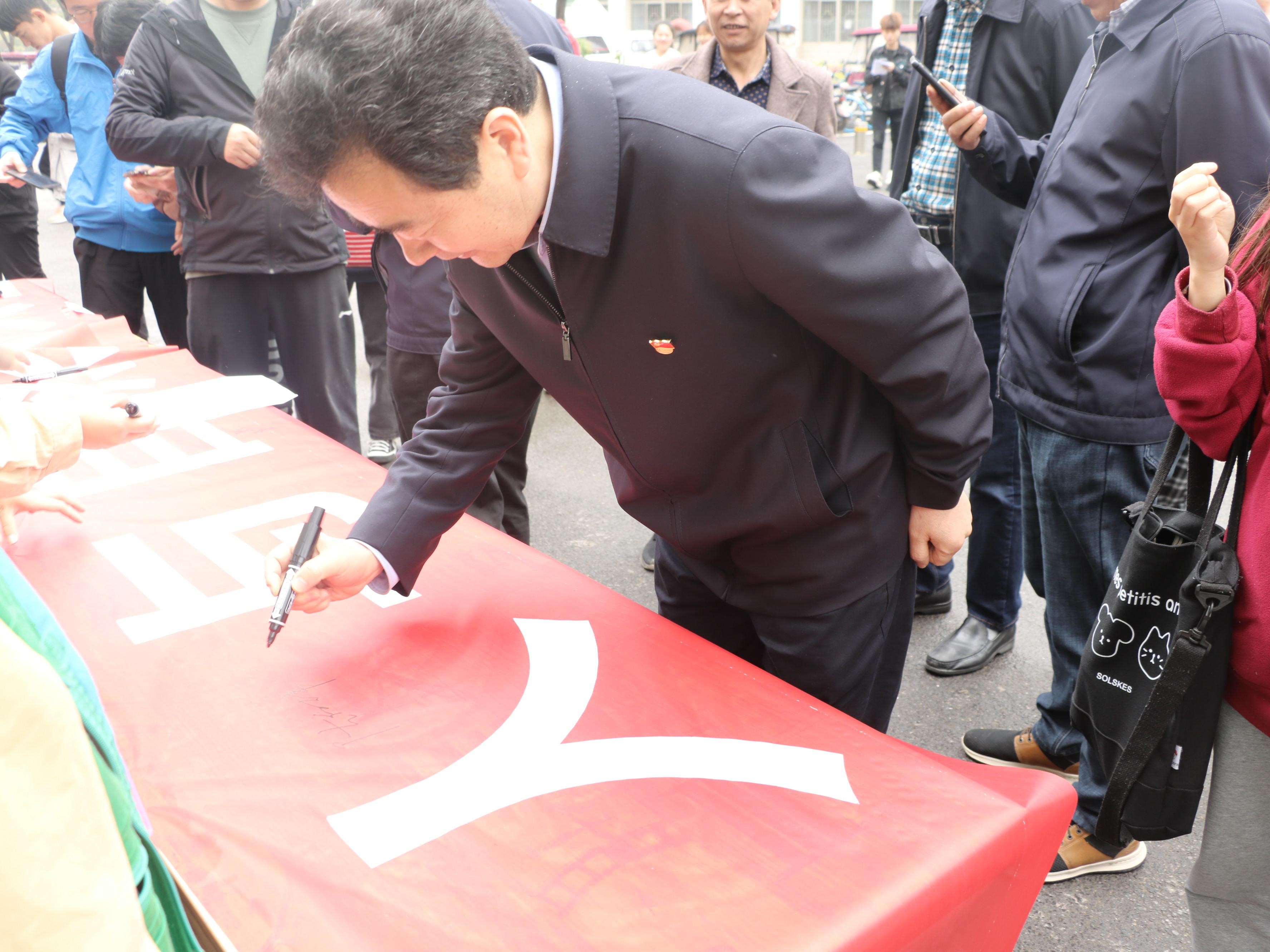 活动得到了司林胜书记、陈向炜校长和朱伟副书记等校领导的支持和肯定,他们都在条幅上签名,并号召老师和同学们从小事做起,从校园的学习生活做起,保护我们的地球,践行习近平总书记提出了“绿水青山就是金山银山”的理念,为生态文明的创建、生态校园的建设做出自己的贡献。