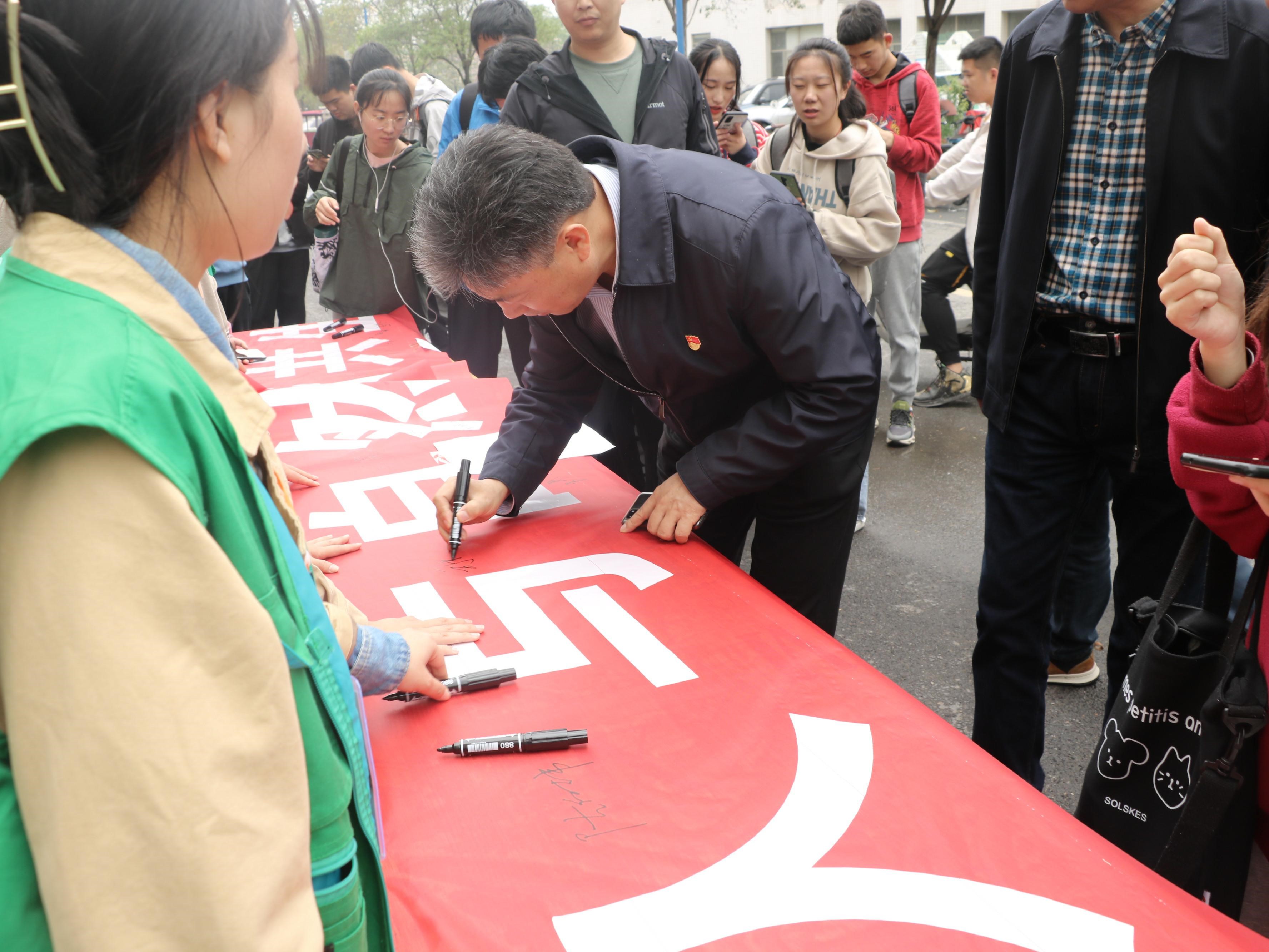 4月22日是第52个“世界地球日”,为了增强同学们保护地球的意识,后勤服务中心和校学生会联合举办了“青春献礼——百年风华之以自然之名,为地球发声”活动,校党委书记司林胜、校长陈向炜、校党委副书记朱伟等校领导和全校师生参加了签名活动。
