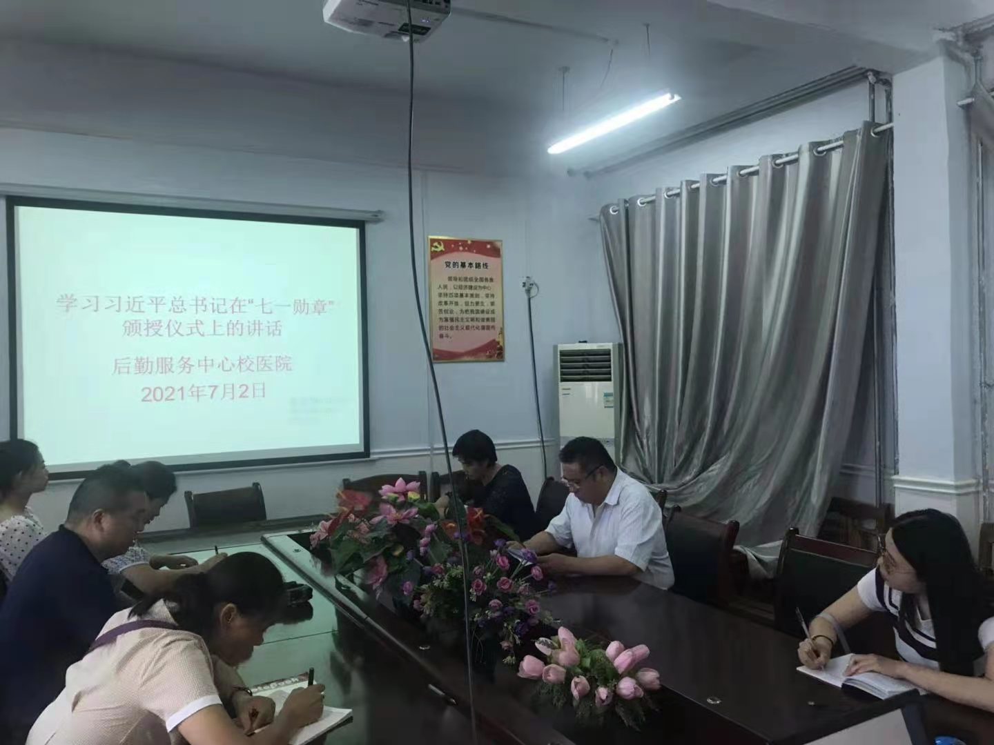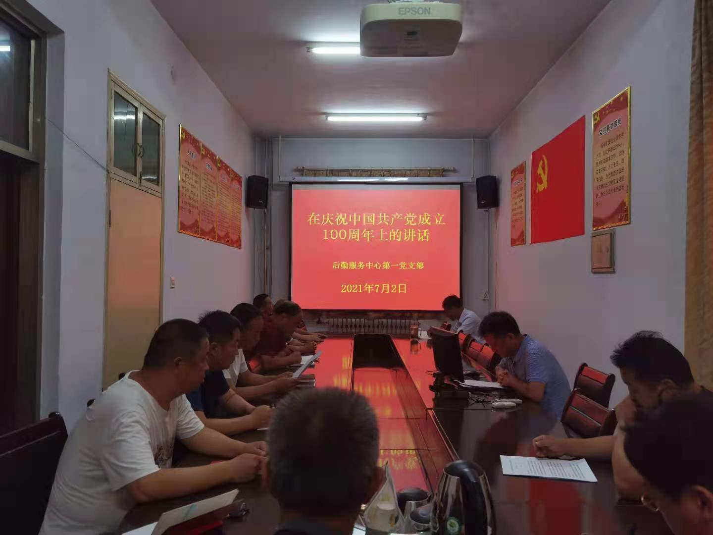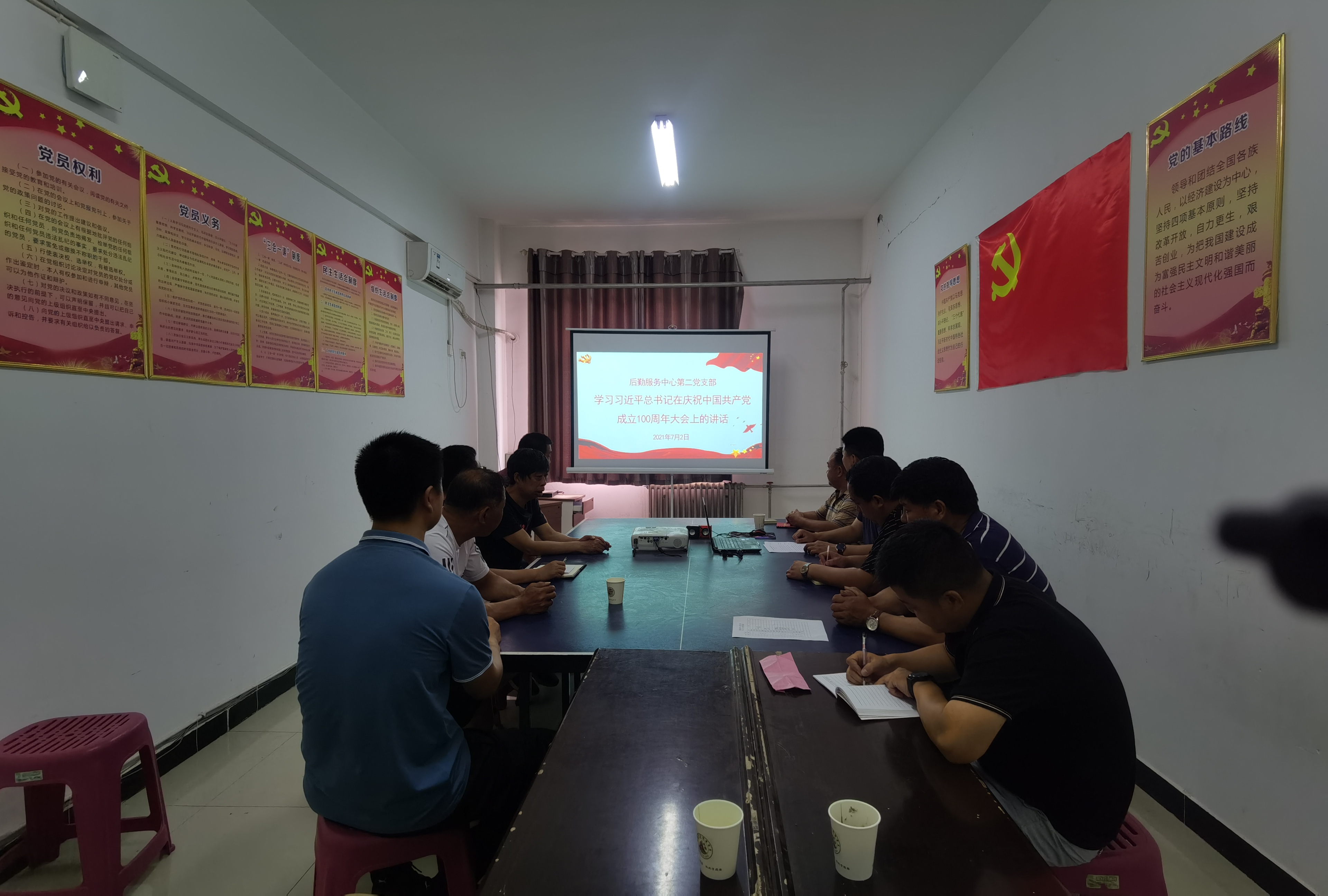 7月2日下午,后勤服务中心各支部书记组织本支部全体职工分别在11号楼116会议室、伙食科会议室、校医院会议室开展集中学习习近平总书记在庆祝中国共产党成立100周年大会上的讲话和在“七一勋章”颁奖仪式上的重要讲话精神,会议由各支部书记主持并领学。